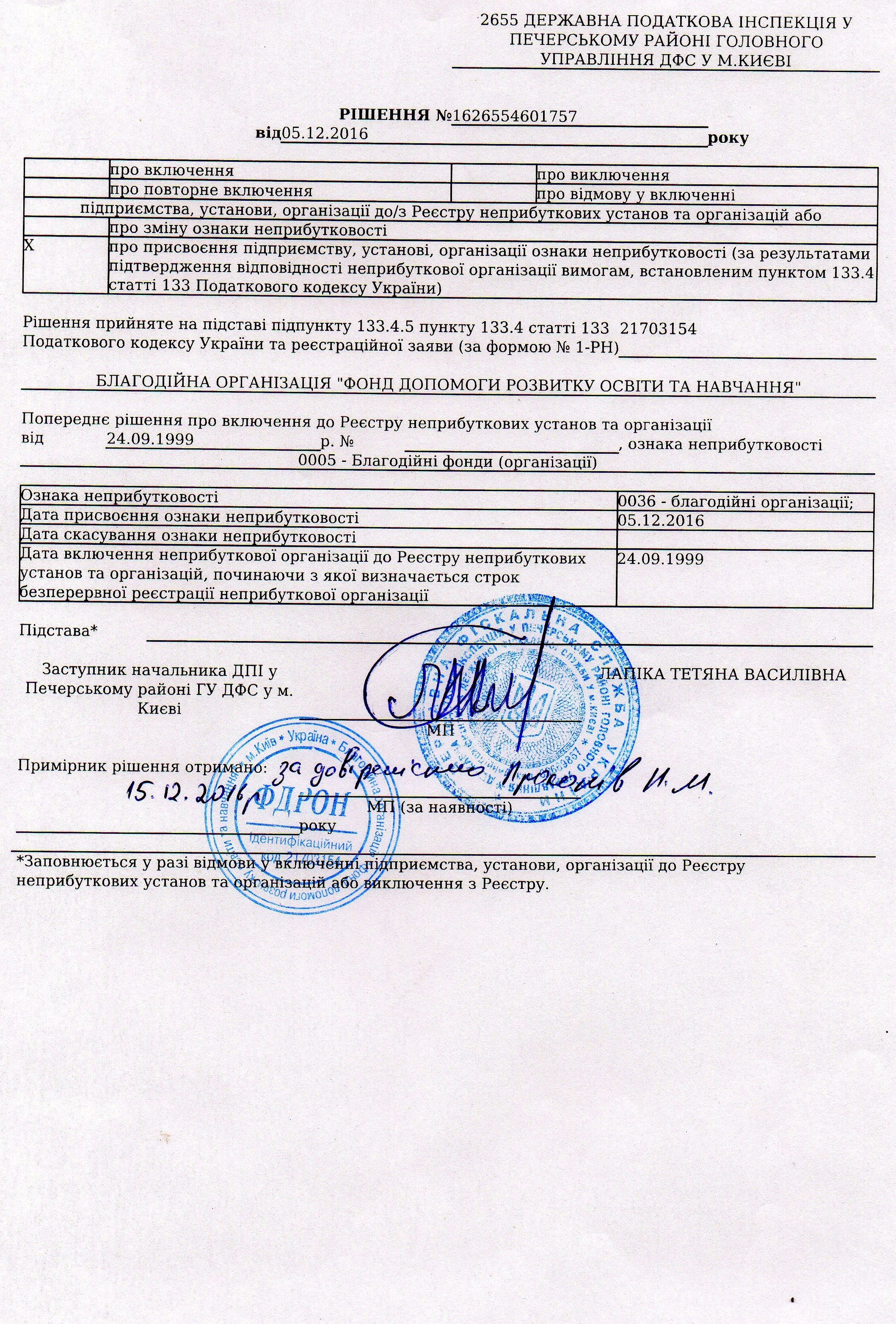 Звіт про використання доходів(прибутків)неприбуткової організації 2016р.